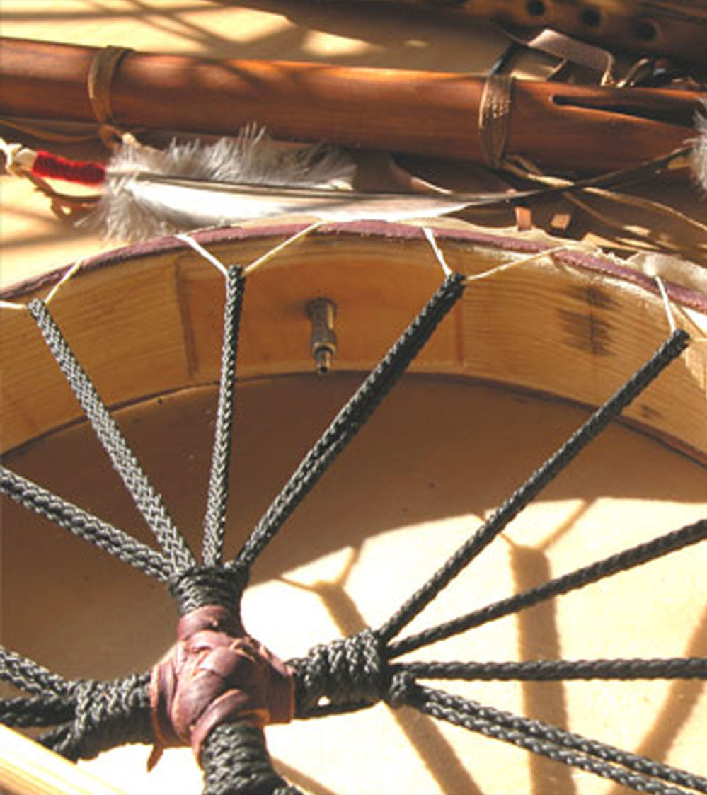 Auf Wunsch fertige ich gerne auch passende lederne Trommeltaschen, mit Krafttieren oder ähnliches geschnitzte Trommelschlägel aus Eibe, Eiche, Esche, Lärche oder anderen Wunschhölzern. Auch fertige ich Anfrage andere Trommel/formen/arten wie Duff, Bodhran, PowWow Drums und Sweatlodgedrums.