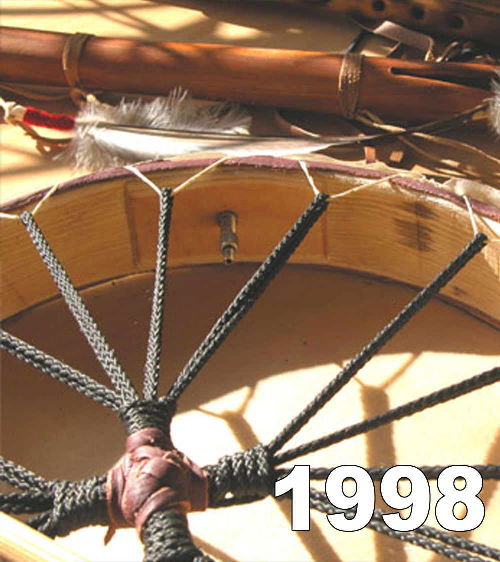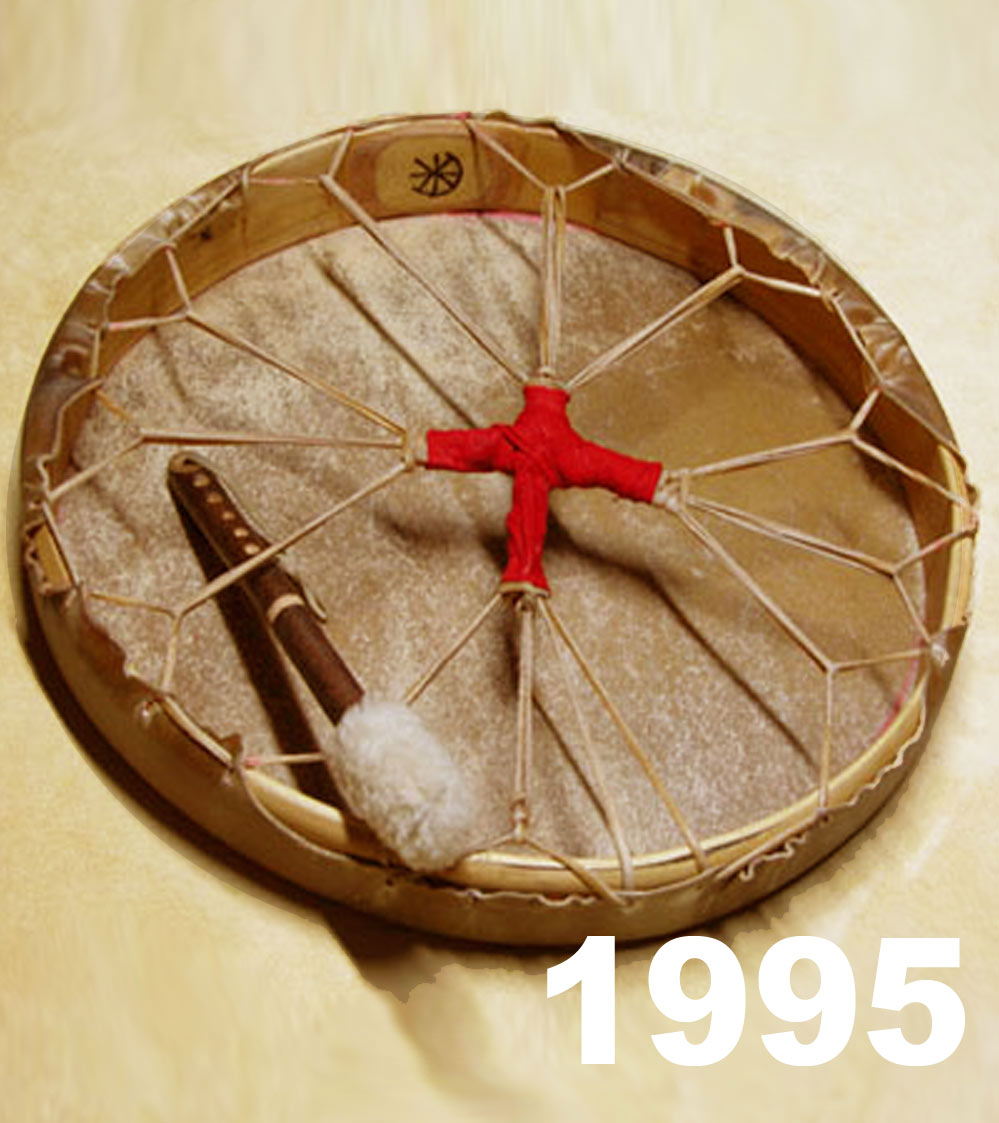 Der sehr leichte Rahmen ist aus edler Rotzeder gebaut und ist mit chemiefreier Rohhaut bespannt, meist mit HirschRohhaut diese Kombination klingt für mich am besten und hat auch eine sehr alte Tradition bei den Schamanischen Trommeln.