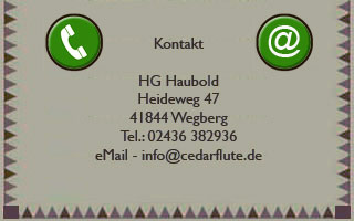 Informationen oder Beratung über meine Instrumente gebe ich ihnen gerne - auch per eMail oder am Telefon. Falls mein Anrufbeantworter an geht melde ich mich bei ihnen zeitnah zurück